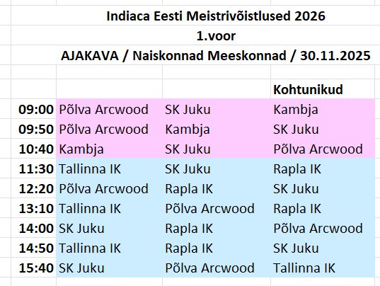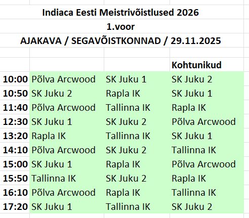 29. ja 30.novembril 2025 toimub NET Spordihallis (Ihaste tee 9, Tartu) 2026 indiaca EMV 1.voor.